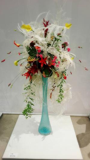 渋谷のヒカリエで行われた株式会社ジャヴァコーポレーション様の合同展示会にて 会場内のドライフラワーのオブジェの製作 各ブランドの装花を担当させていただきました 入り口の商談スペースの傍らには高さ約3m 幅約1 5mのドライフラワーと生の植物を混ぜ合わせた巨大