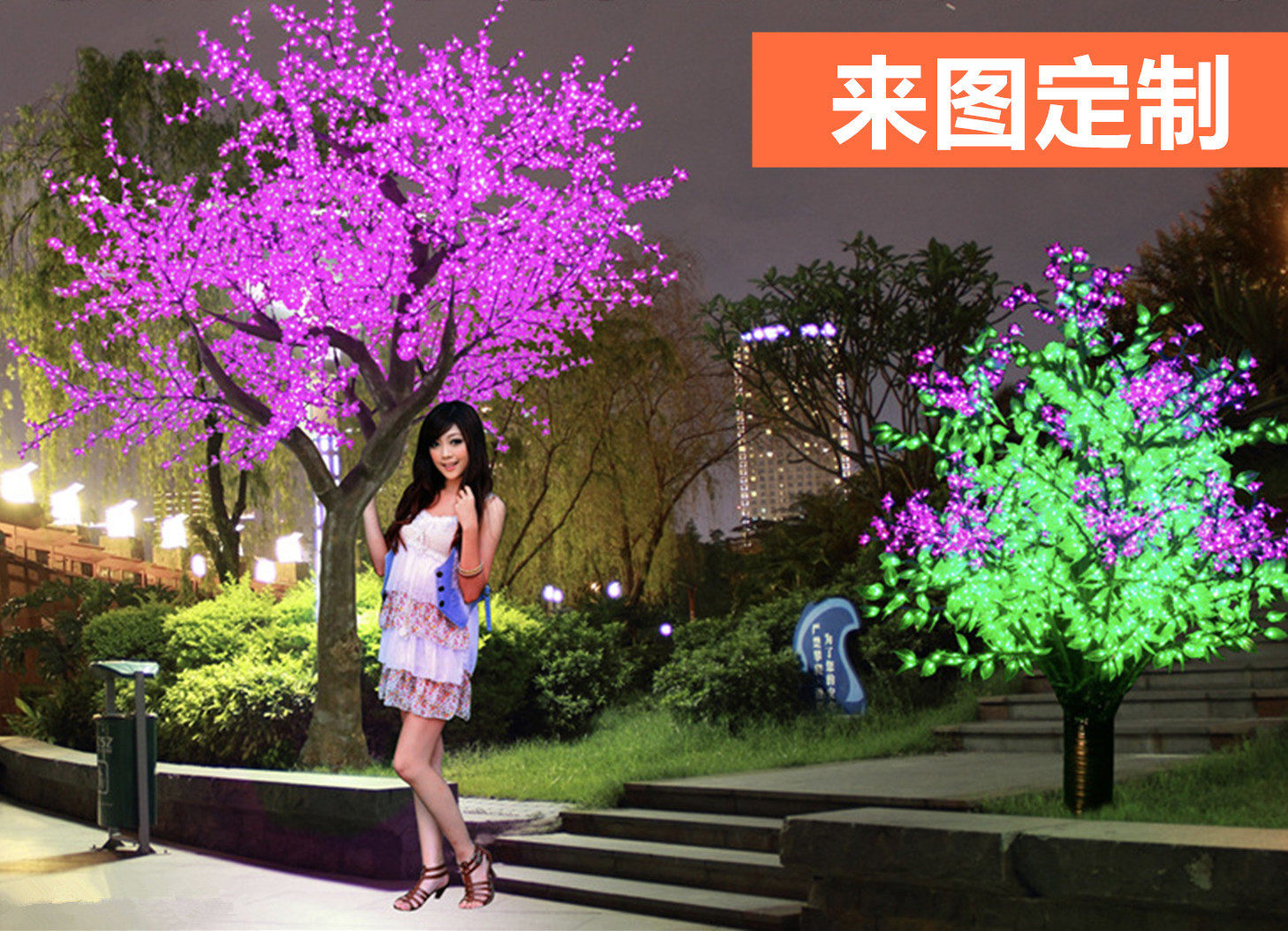 Led粉花绿叶装饰仿真树灯 中山市千棵樱照明科技有限公司提供led粉花绿叶装饰仿真树灯的相关介绍 产品 服务 图片 价格