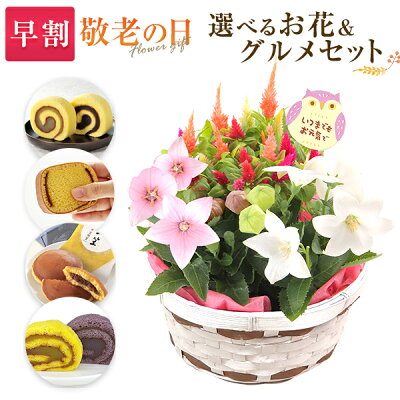 楽天市場 敬老の日 ギフト 花 お菓子 選べる3種類の鉢花 スイーツセット 敬老の日期間お届け 送料無料 一部地域を除く 花とスイーツ りんどう 鉢植え 花鉢 リンドウ 敬老の日プレゼント お花 祖父 祖母 おばあちゃん ハッピーガーデン