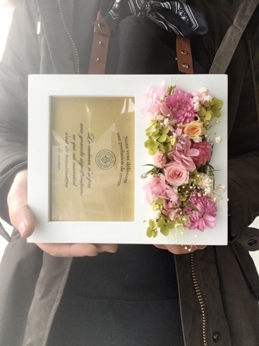 ピンク系のオーダー頂いた写真立てアレンジ プリザーブドフラワー 花とらなんと好きなこと